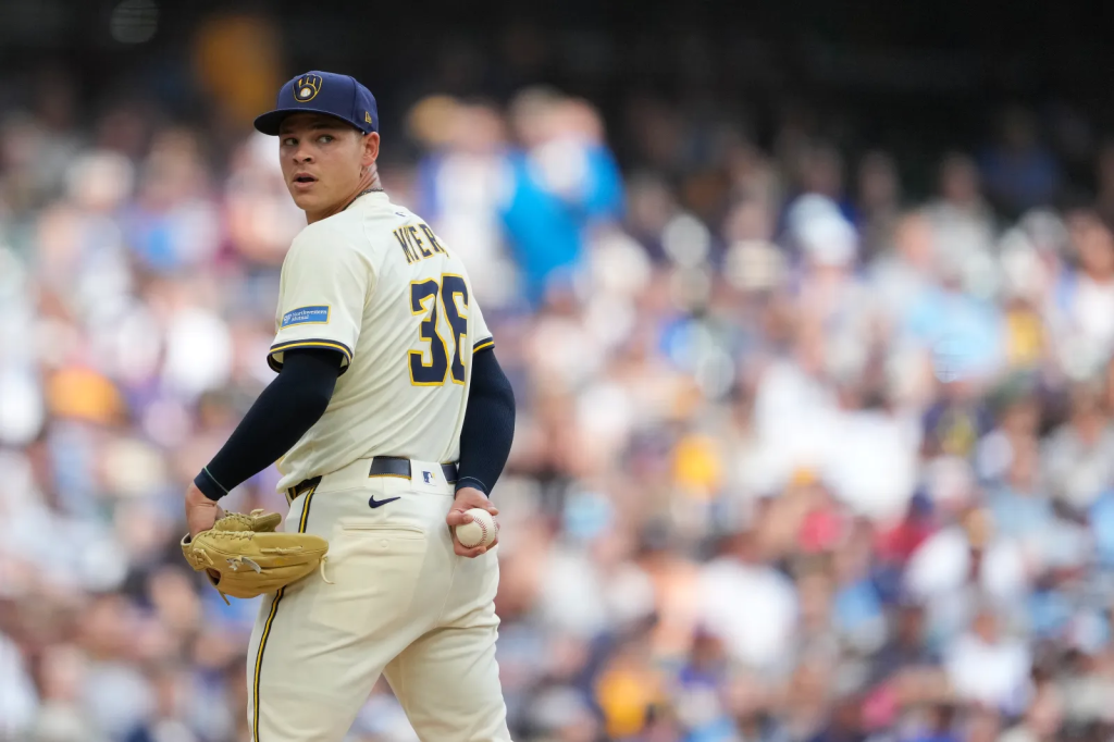 Game 3, win-or-go-home against the Mets. Pat Murphy put his faith in Myers. And Myers responded with a perfect five innings: 0 runs, 0 walks, 5 strikeouts. 66 pitches. No mistakes. The outcome of the game was predictable—bullpen collapse, Brewers eliminated. But amidst the wreckage, Myers’ performance was a bright spot swallowed by collective grief.