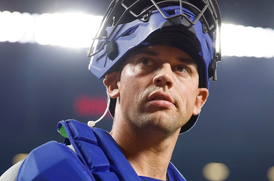 Oct 26, 2025; Los Angeles, CA, USA; Los Angeles Dodgers catcher Ben Rortvedt (47) during World Series workouts prior to game three against the Toronto Blue Jays at Dodger Stadium. Mandatory Credit: Jayne Kamin-Oncea-Imagn Images | Jayne Kamin-Oncea-Imagn Images