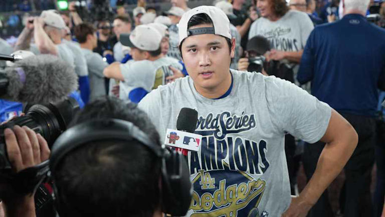 There’s irony in the image: Ohtani, standing amid World Series celebration chaos, learning about the Super Bowl like a curious newcomer.