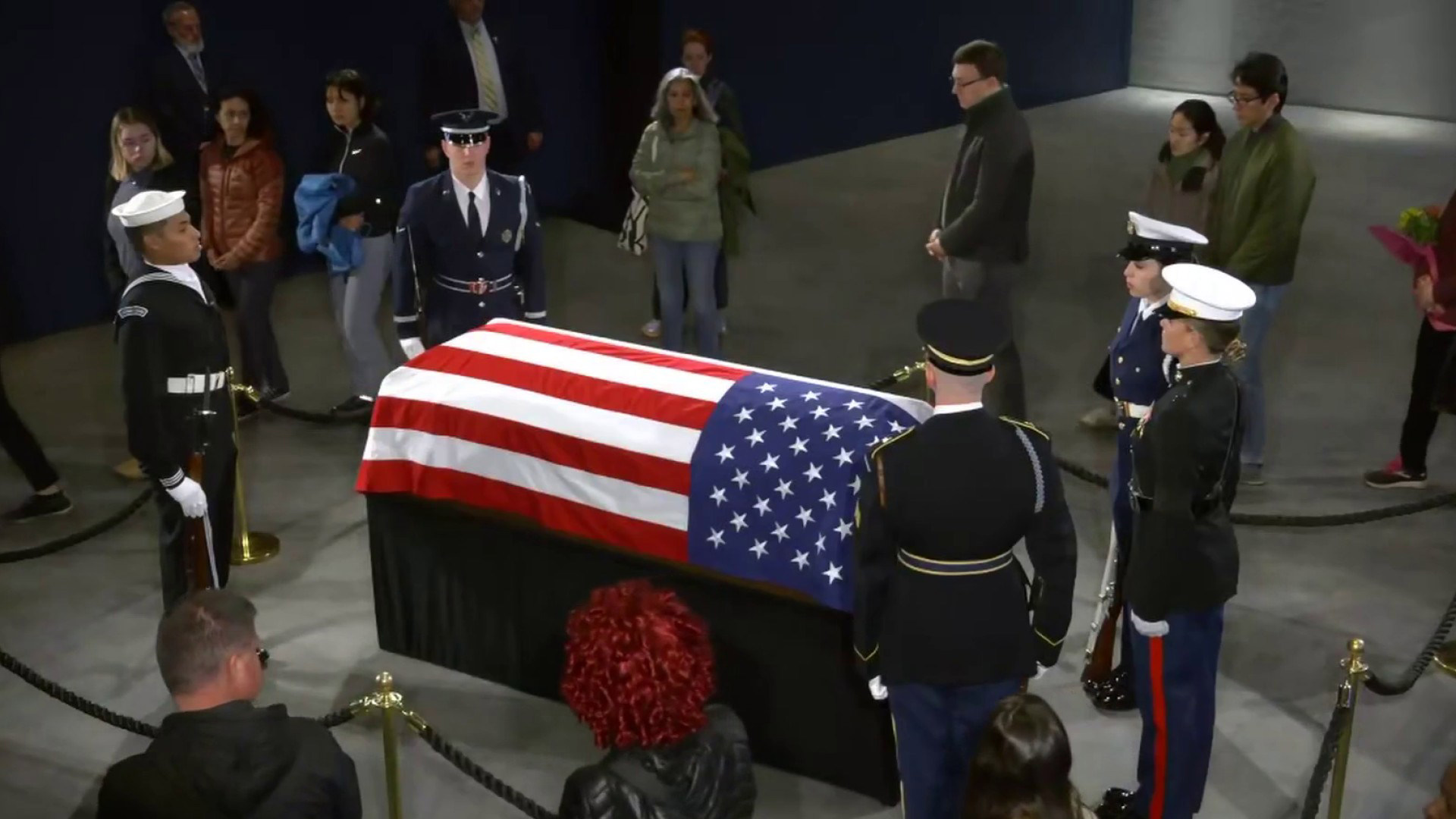 The Guardsman tried to respond, but emotion overtook him. His knees buckled slightly — the kind of collapse grief brings when it wins the internal fight to stay composed.