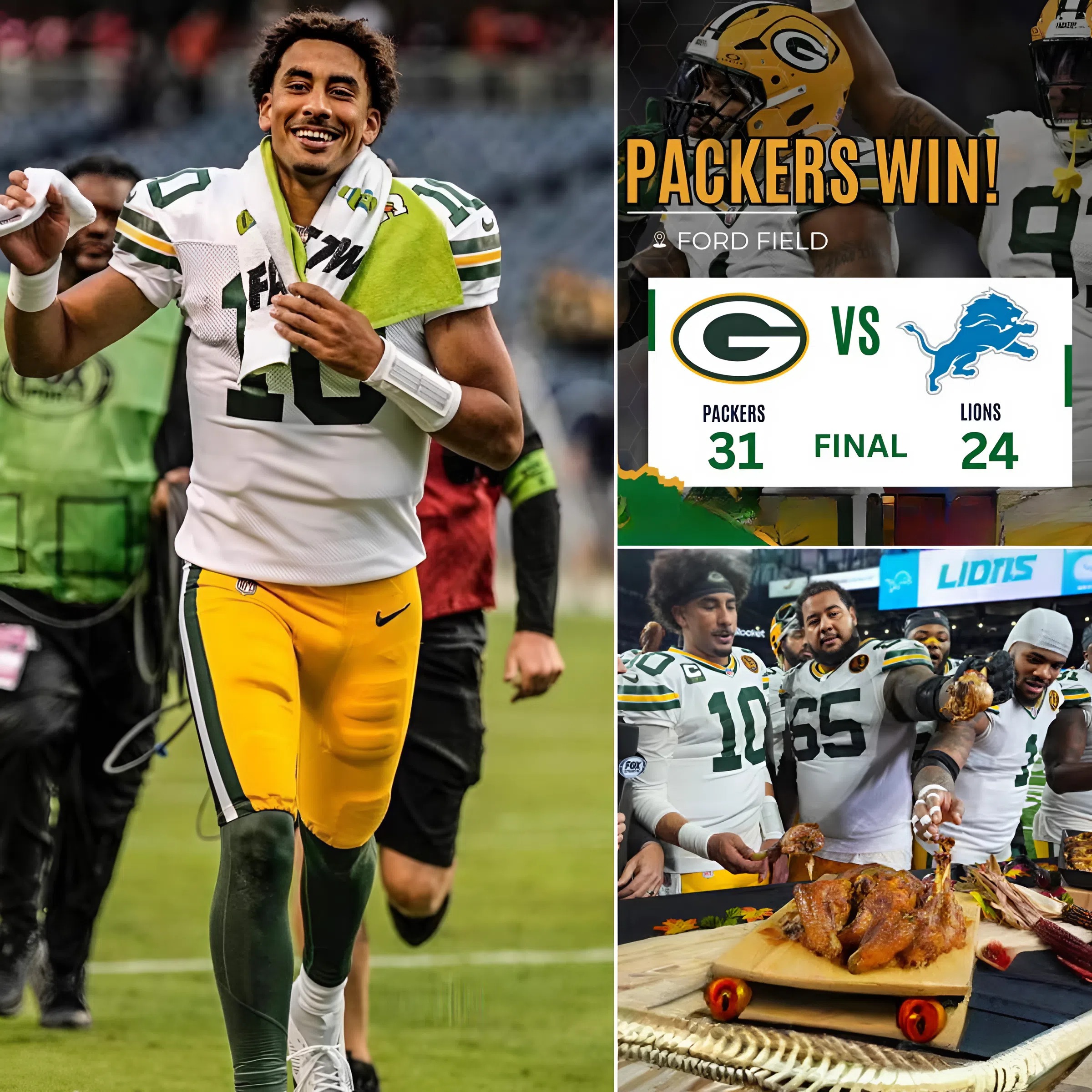 Green Bay Packers fans woke up this morning still buzzing from one of the most thrilling Thanksgiving performances in franchise history. Under the bright lights of Ford Field â and in front of a national audience expecting Detroit to flex its muscles again â Jordan Love delivered the undisputed signature game of his young career, torching the Lions for 4 touchdowns, including two jaw-dropping 4th-down conversions that ripped the heart out of Detroitâs aggressive defensive approach.