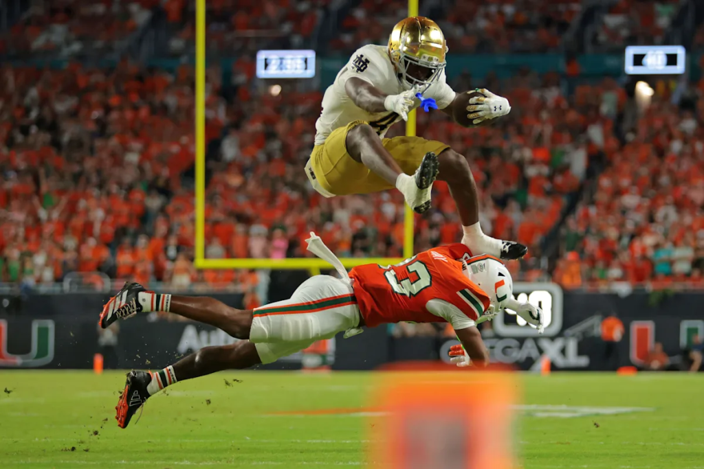 Gilman delivered several key moments that season, including a crucial forced fumble against USC that helped preserve Notre Dame’s undefeated regular season.