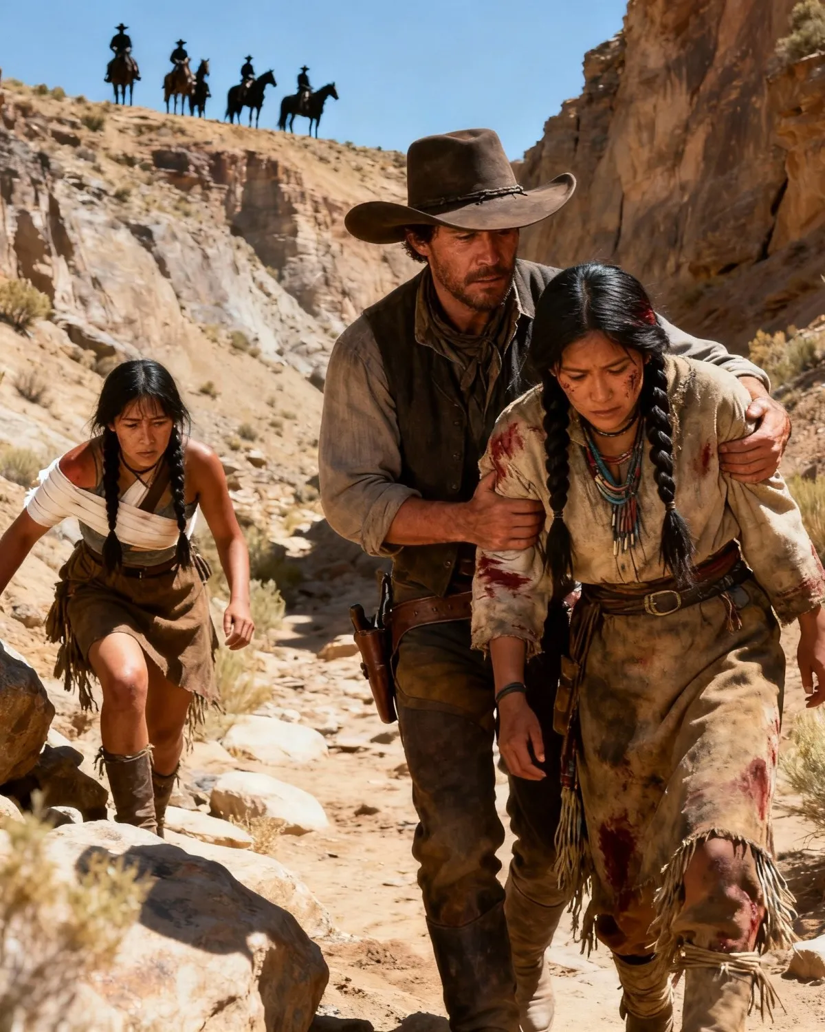 Inside, in the farthest corner where the light hardly reached, two young women huddled like cornered animals. Apache by their dress, though everything they wore was torn, darkened with dust, and stiff with dried blood.