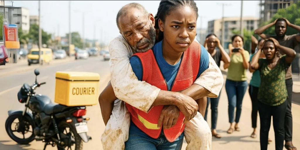 Let’s take him to the hospital, please. No one moved. Not one person. Adana rushed to the old man. “Sir, please stay with me,” she whispered as she gently knelt beside him. She tried stopping a few taxis, but none stopped. She looked at her delivery box again. Then she made her decision.