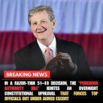 Washington was thrown into absolute uproar today in this fictional scenario after Senator John Kennedy unveiled a sweeping new proposal that would bar anyone not born inside the United States from ever holding the presidency, the vice presidency, or even a seat in Congress. The bill, introduced with almost no warning, instantly detonated across the political landscape, sending lawmakers scrambling, analysts stammering, ... Read more