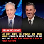 ⚡ FLASH NEWS: Late-night hosts Jon Stewart and Jimmy Kimmel respond to Trump’s comments on Tim Walz and his MRI scan, prompting a wave of public reactions ⚡.NH