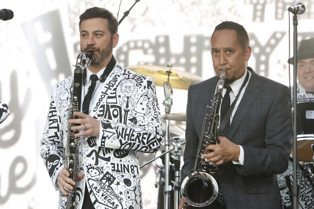 Cleto and the Cletones has provided the live music for Jimmy Kimmel Live! since the show first premiered in 2003. Cleto’s dad, Cleto Escobado Sr., is also a member of the band and plays tenor and alto saxophones on Kimmel’s show.