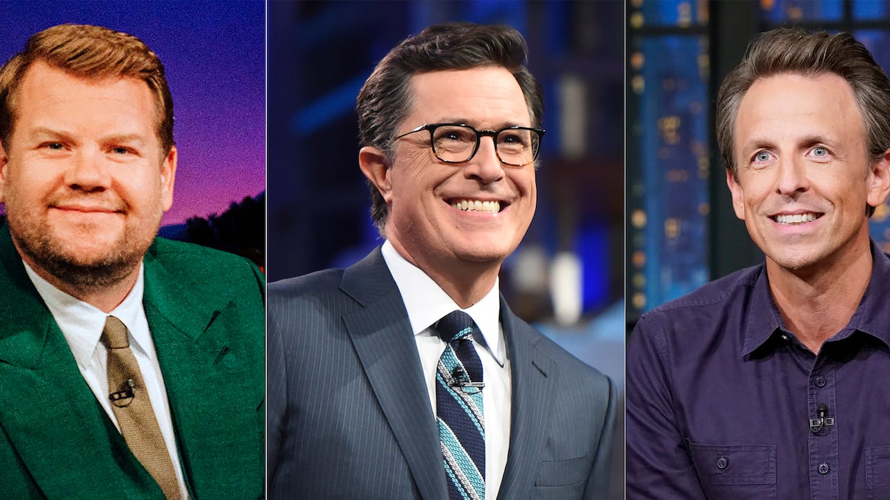 In one case, they even combined forces: CBS’s James Corden and NBC’s Seth Meyers used a split-screen to open their 12:30 a.m. shows together.
