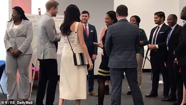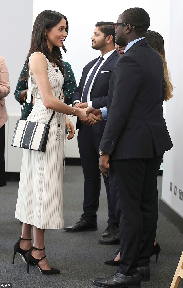 Meghan is pictured shaking hands with delegates at the reception for the Commonwealth Youth Forum