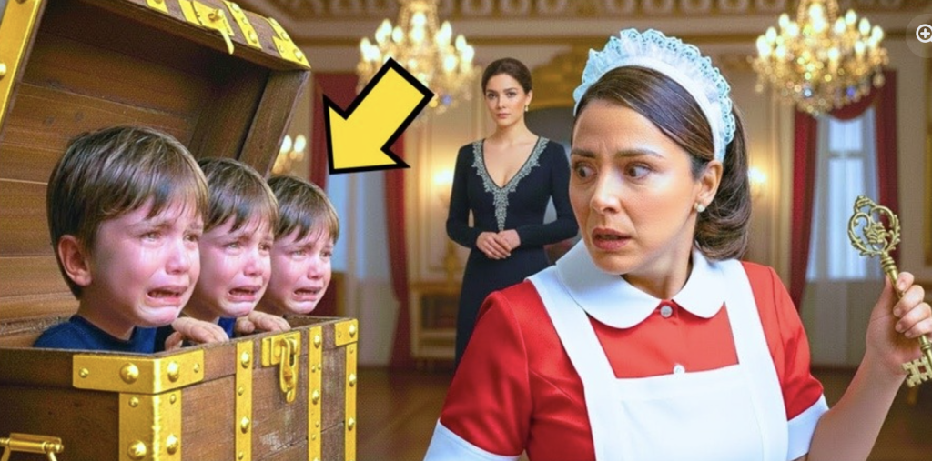 Inside, curled up together, were three children — identical boys, maybe three or four years old, their faces pale and streaked with tears.