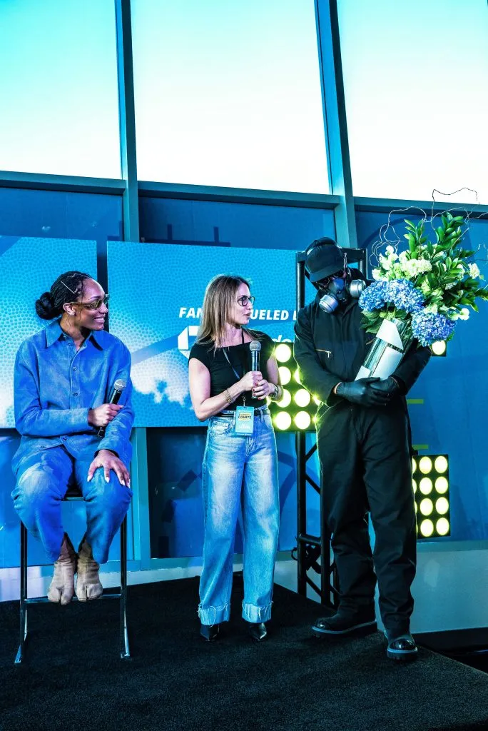 Mr. Flower Fantastic paid tribute to Wilson’s influence with a custom white and blue floral bouquet, a symbolic recognition of the way she’s shaping the game. He also designed limited-edition merchandise, including custom basketballs, totes and crewnecks, that fans scrambled to get their hands on, further cementing Wilson’s role as both an athlete and an icon.